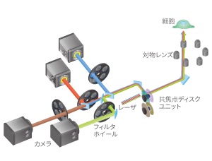 當自動化顯微鏡以每分鐘數千幀的速度捕捉細胞圖像,當高通量測序儀每日吐出數TB的基因組數據,生命科學研究正經歷著信息爆炸。面對這浩瀚如海的生物數據,傳統的人工分析方式已如滄海一粟般無力應對。高內涵篩選平臺作為連接海量數據與生物學洞見的橋梁,其核心價值正在于如何從這洶涌的信息洪流中精準提取出真正具有科學意義的信號。 橫河電機專有的多點同步掃描方法,是在掃描區域同時使用約1,000幀/秒的激光束和高速旋轉的圓盤。這些圓盤包括一個針孔陣列盤,其具有大約20,000個以等螺距螺旋排列的針孔,以及一個將激發光聚焦到單個針孔中的微透鏡陣列盤。這不僅可以實現高速成像,而且還可以在很大程度上降低光損傷和光漂白。